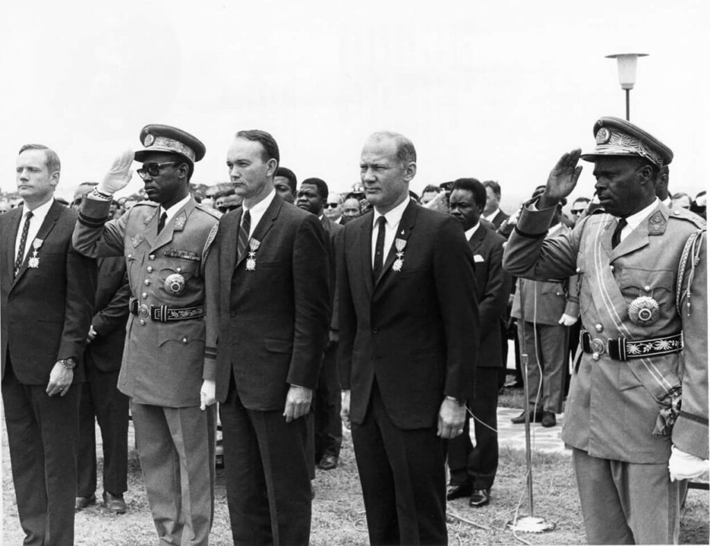C’est dans cette logique qu’intervient 1969. En accueillant à Kinshasa les astronautes de la mission Apollo 11, le Zaïre s’inscrit dans le récit de la modernité mondiale. Ces hommes viennent de marcher sur la Lune ; leur tournée internationale est un acte diplomatique soigneusement sélectionné. Être sur l’itinéraire, c’est être reconnu. Kinshasa devient, l’espace de quelques jours, une capitale connectée à l’épopée scientifique de l’humanité. Pour la population comme pour les élites, le message est clair : le pays ne vit pas en marge de l’histoire, il y participe.
